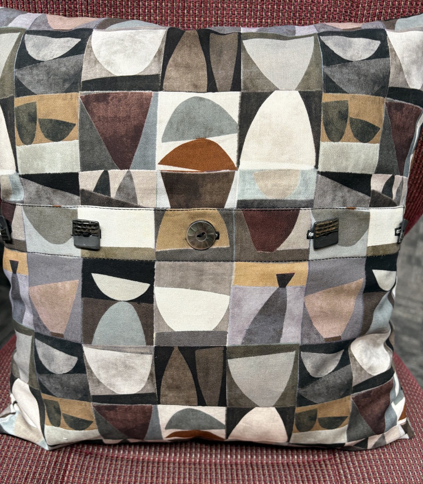 Buttonholes in Embroidery: Many times a project will have issues with doing buttonholes: Weight of garment, thickness of cloth or nearby seam allowances, necessary stabilizer. Doing them with your embroidery machine can help with these situations. We will be doing buttonholes for the back of a pillow, but the directions would apply for other projects.
